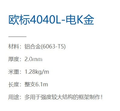 鋁型材歐標4040L-電K金